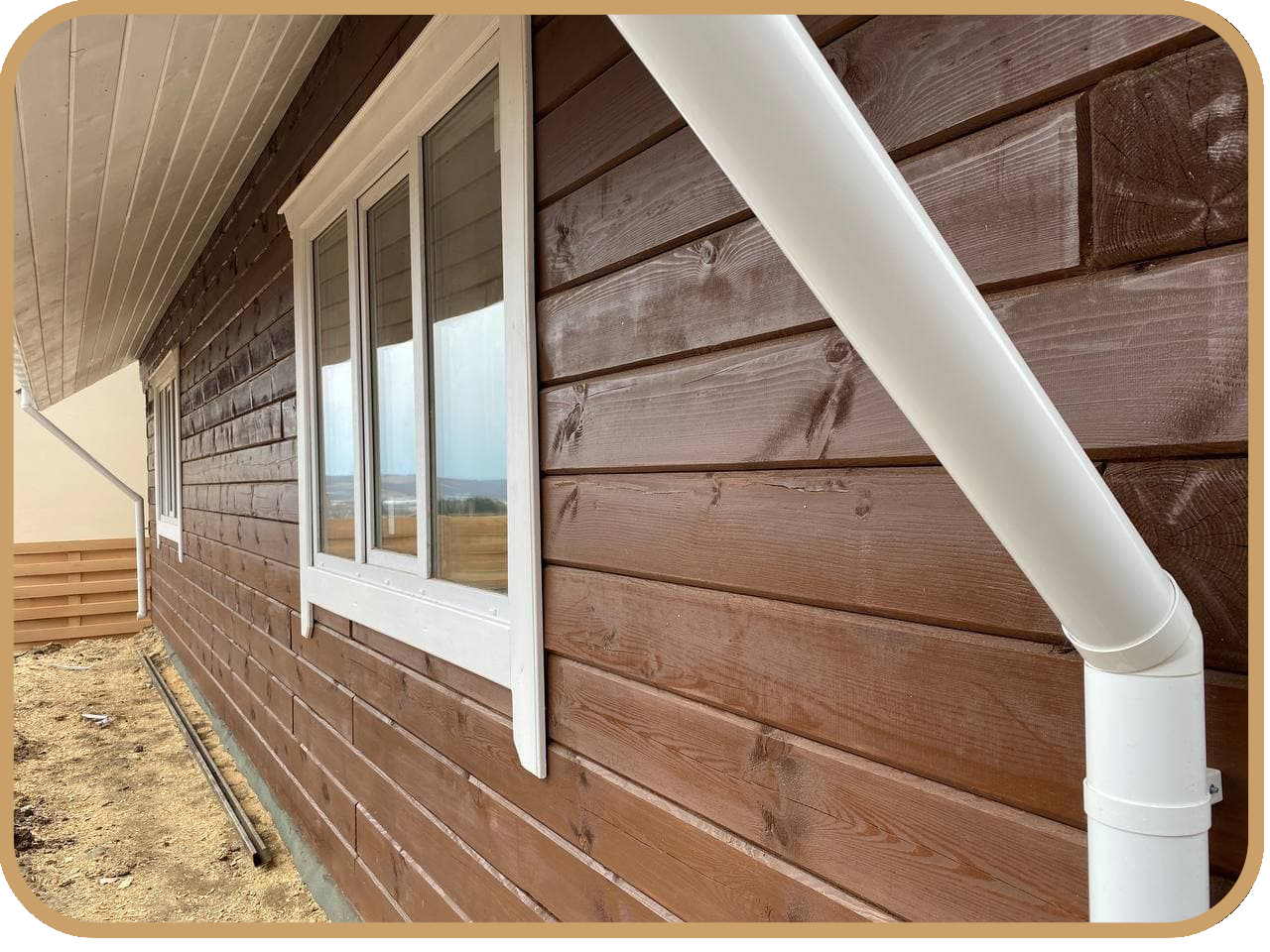 Основа -Строганный брус 180 мм. Сосна и лиственница. Это долговечный, надежный и хорошо удерживающий тепло материал.