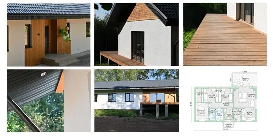 - Фасад: штукатурный фасад короед со вставками из планкена